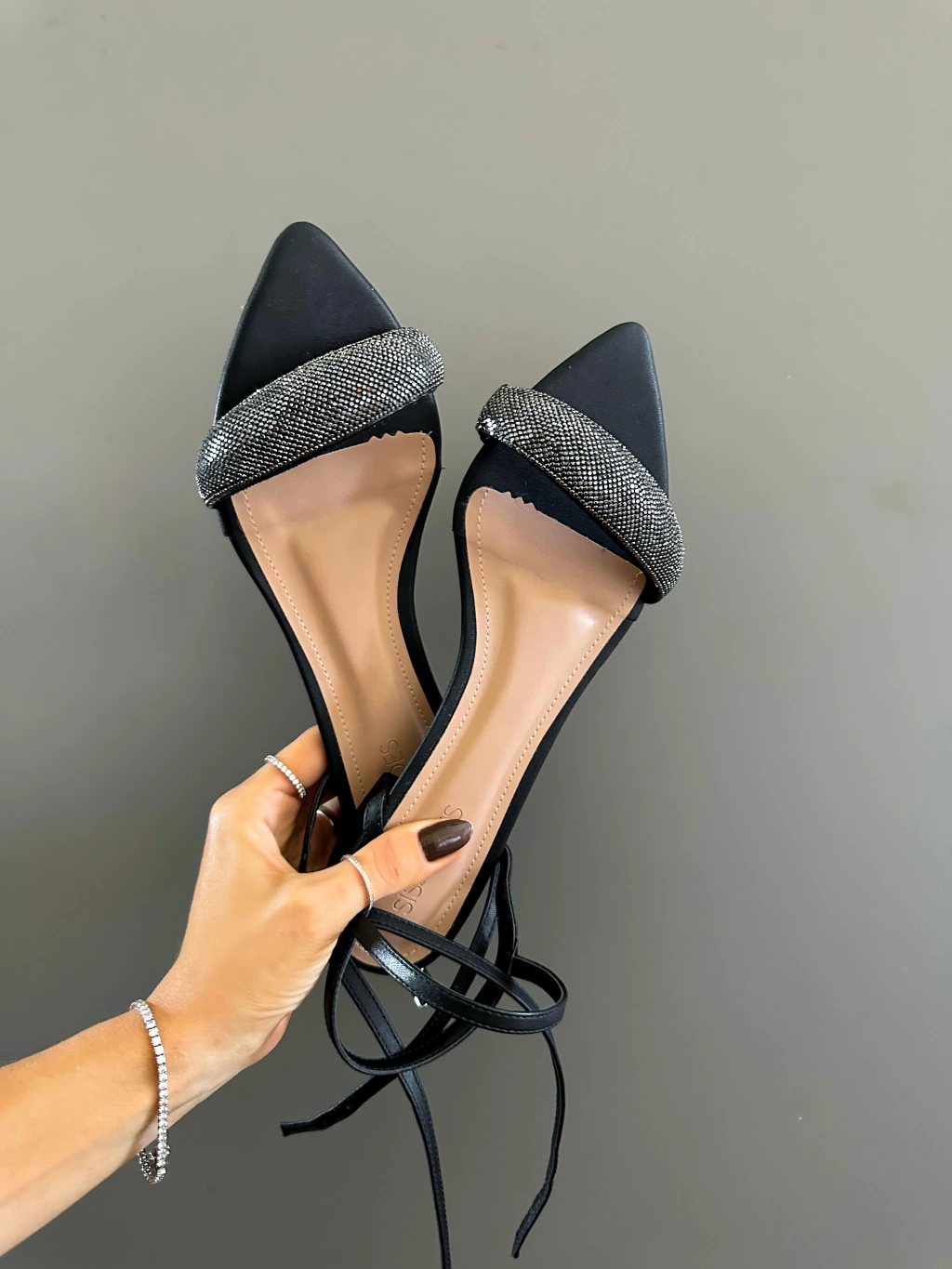 Descubra a Flat Sandália Glam Strass Preta com amarração. Estilo e conforto em cada passo. Escolha sua numeração e arrase! Compre agora!