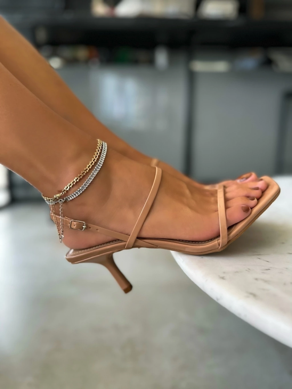 Tiras cruzadas sobre os dedos e uma única no peito do pé