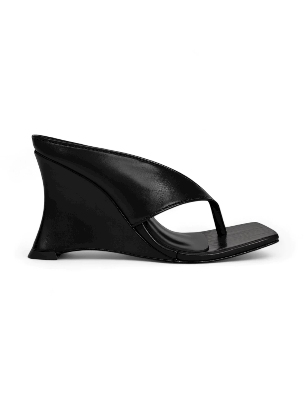 Esse tamanco traz design minimalista com bico quadrado e salto anabela (wedge) curvo de 9cm, moderno e confortável para o dia a dia. Material couro sintético de alta qualidade. Tiras largas nas laterais, dividindo os dedos, proporcionando firmeza e estilo.